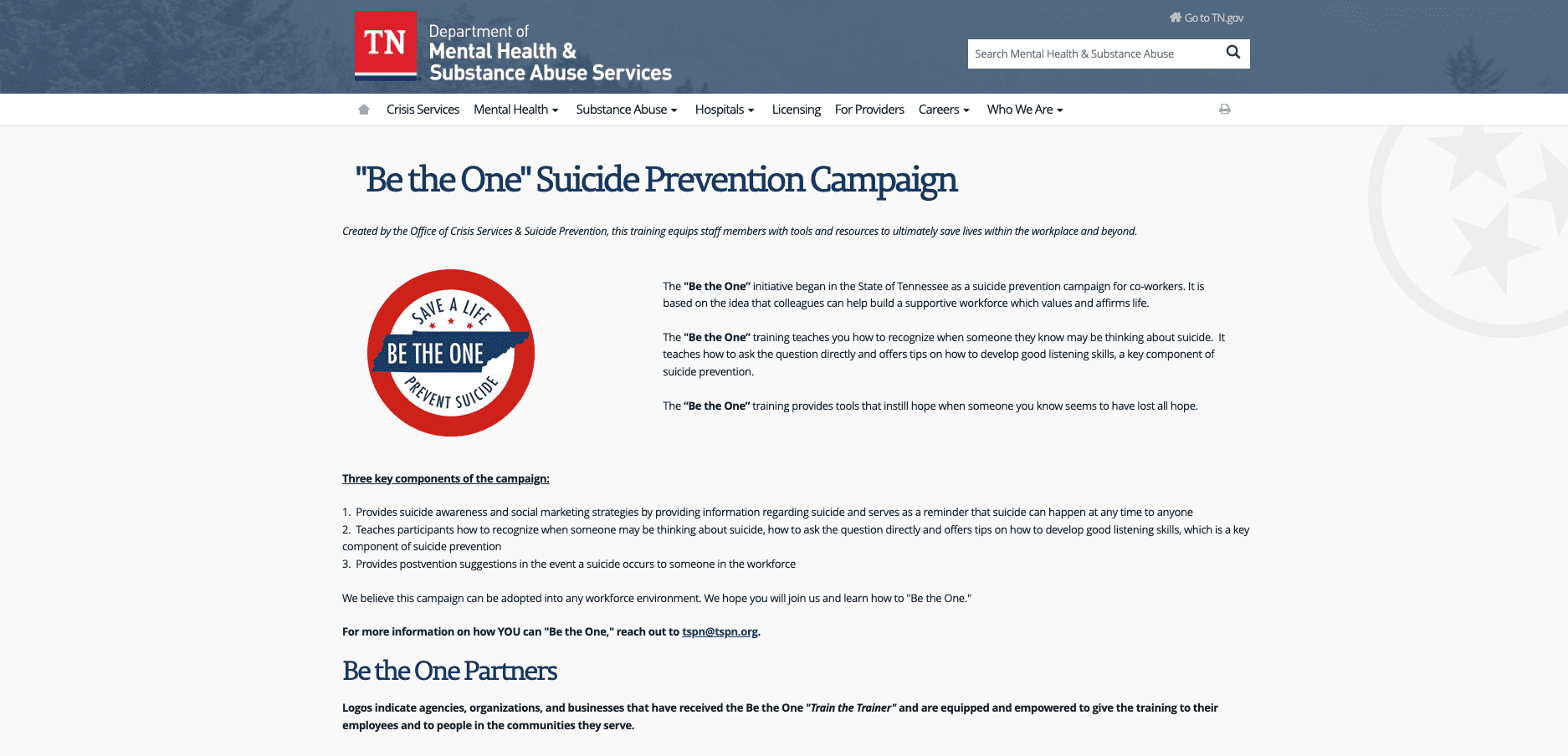 ...Campaña de prevención del suicidio en Tennessee que ofrece recursos, formación y apoyo a las comunidades.