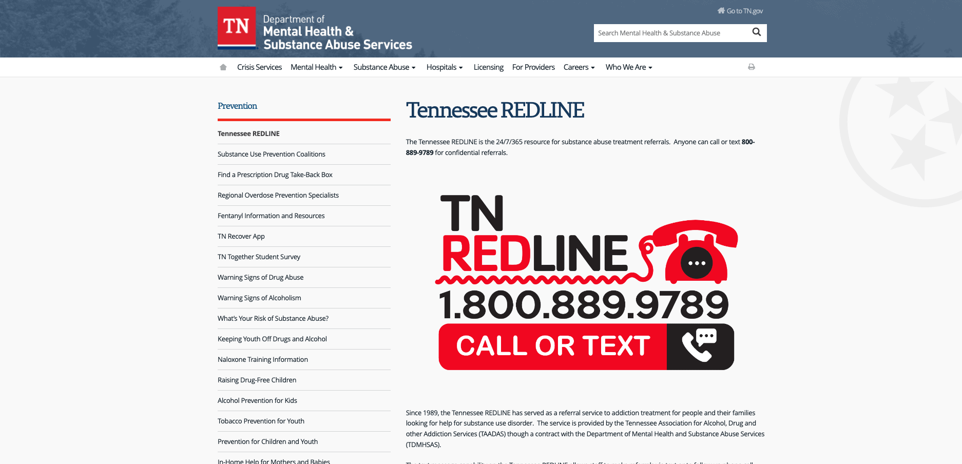 ...Línea de ayuda gratuita en todo el estado que pone en contacto a los habitantes de Tennessee con recursos para el tratamiento y la recuperación del abuso de sustancias.