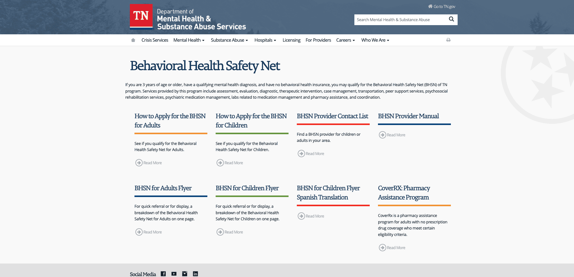 ...La Red de Seguridad de Salud Conductual de Tennessee conecta a las personas sin seguro médico con los servicios de salud mental.
