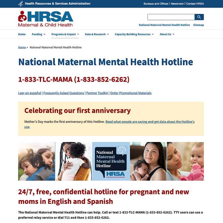 ...Línea de atención telefónica disponible las 24 horas del día, los 7 días de la semana, que ofrece apoyo a mujeres embarazadas y en el posparto que atraviesan dificultades de salud mental.