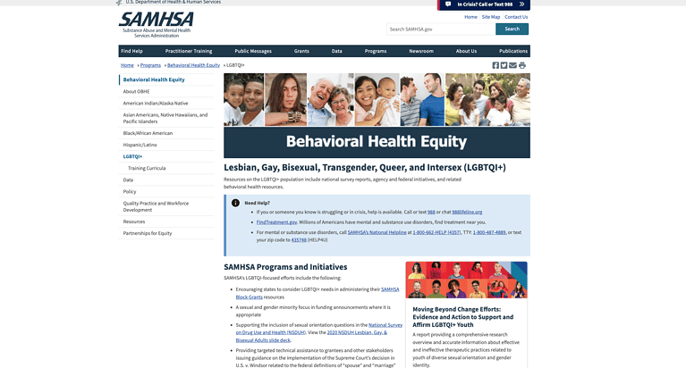 ...Recursos federales para la equidad en la salud conductual, los servicios de tratamiento y el apoyo a la comunidad LGBTQI+.