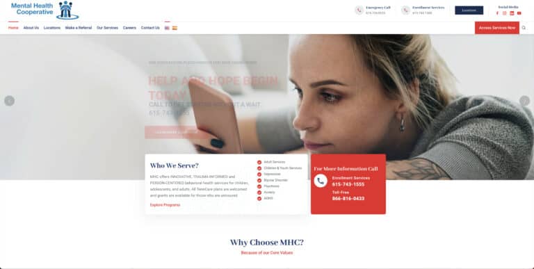 ...Servicios integrales de salud mental, que incluyen asesoramiento, psiquiatría e intervención en situaciones de crisis, en toda la región de Middle Tennessee.