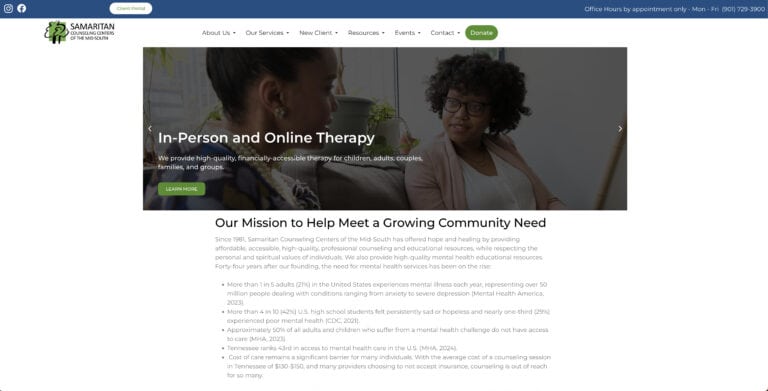 ...Centro de asesoramiento de inspiración religiosa que ofrece servicios de salud mental a precios asequibles a la comunidad de Nashville.
